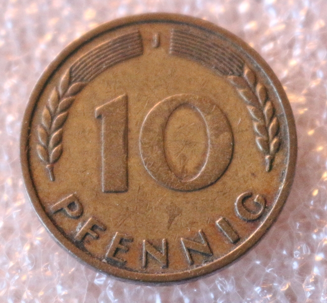 BRD 10 Pfennig 1950 J, 4,0 g, Dm 21,50 cm, J 383