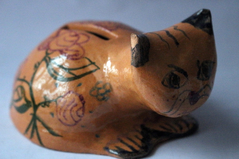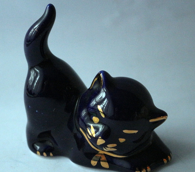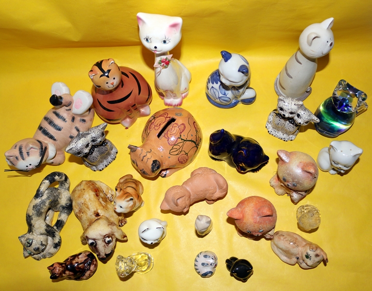 Konvolut aus verschiedenen Katzenfiguren, verschiedene Motive, verschiedene Materialien wie Glas, Porzellan, Steingut usw., teils als Sparbüchse, größte Katze 18,0 cm; kleinste 2,5 cm