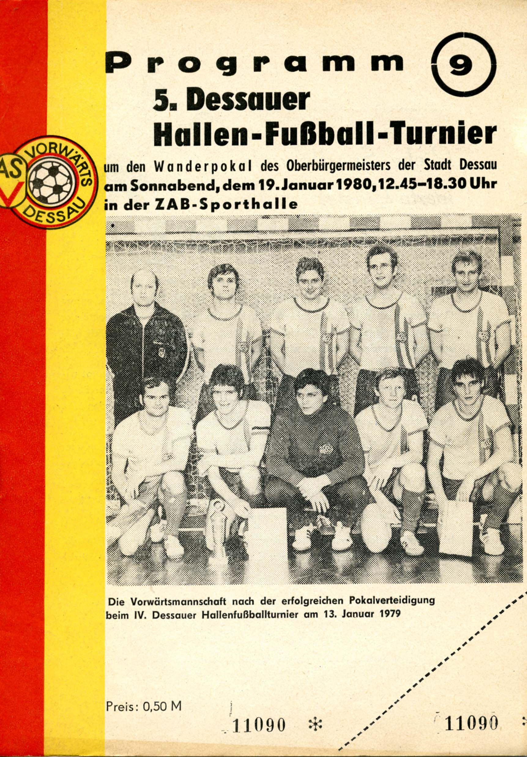 Programm 5. Dessauer Hallen-Fußball-Turnier um den Wanderpokal des Oberbürgermeister, Sonnabend, dem 19. Januar 1960, 12.45 - 1830 Uhr, ZAB-Sporthalle