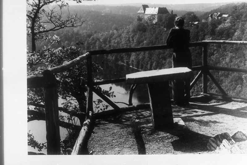 Original - Negativ, s/w, Kleinbild, Reproduktion, Ausblick auf Schloss Burgk und die Saaleschleife von einer Aussichtsplattform