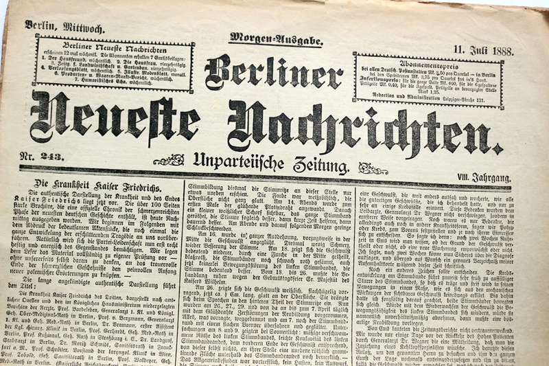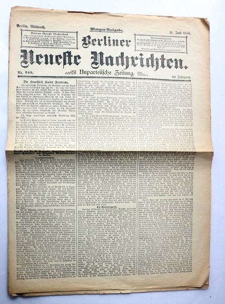 Morgen-Ausgabe, Nummer 243, Berlin, Mittwoch, 11. Juli 1888, VIII. Jahrgang, Unparteiische Zeitung