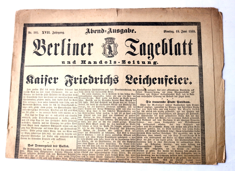 Berliner Tageblatt und Handels-Zeitung, Abend-Ausgabe, Nummer 305, Berlin, Montag, 18. Juni 1888, XVII. Jahrgang,