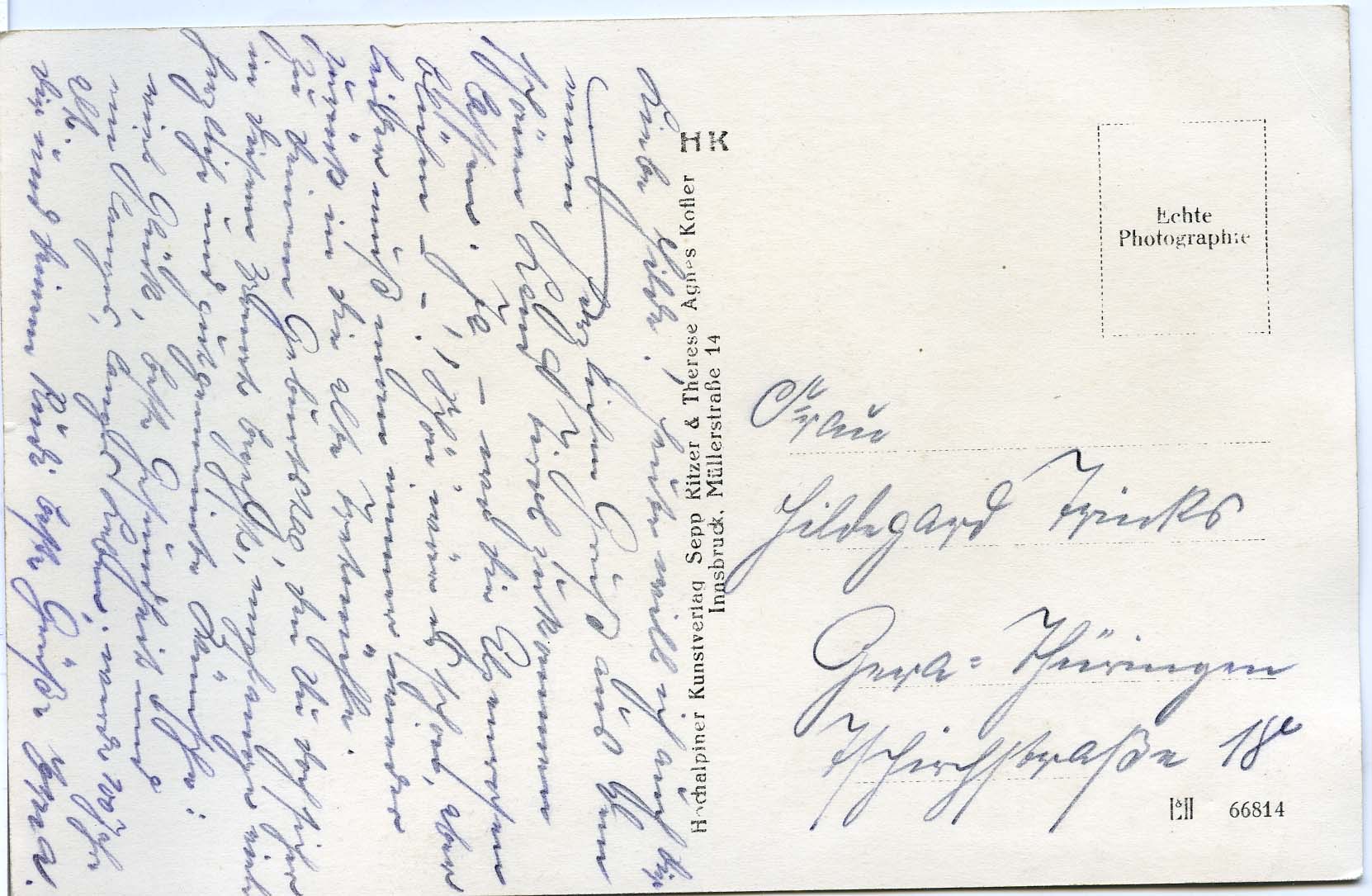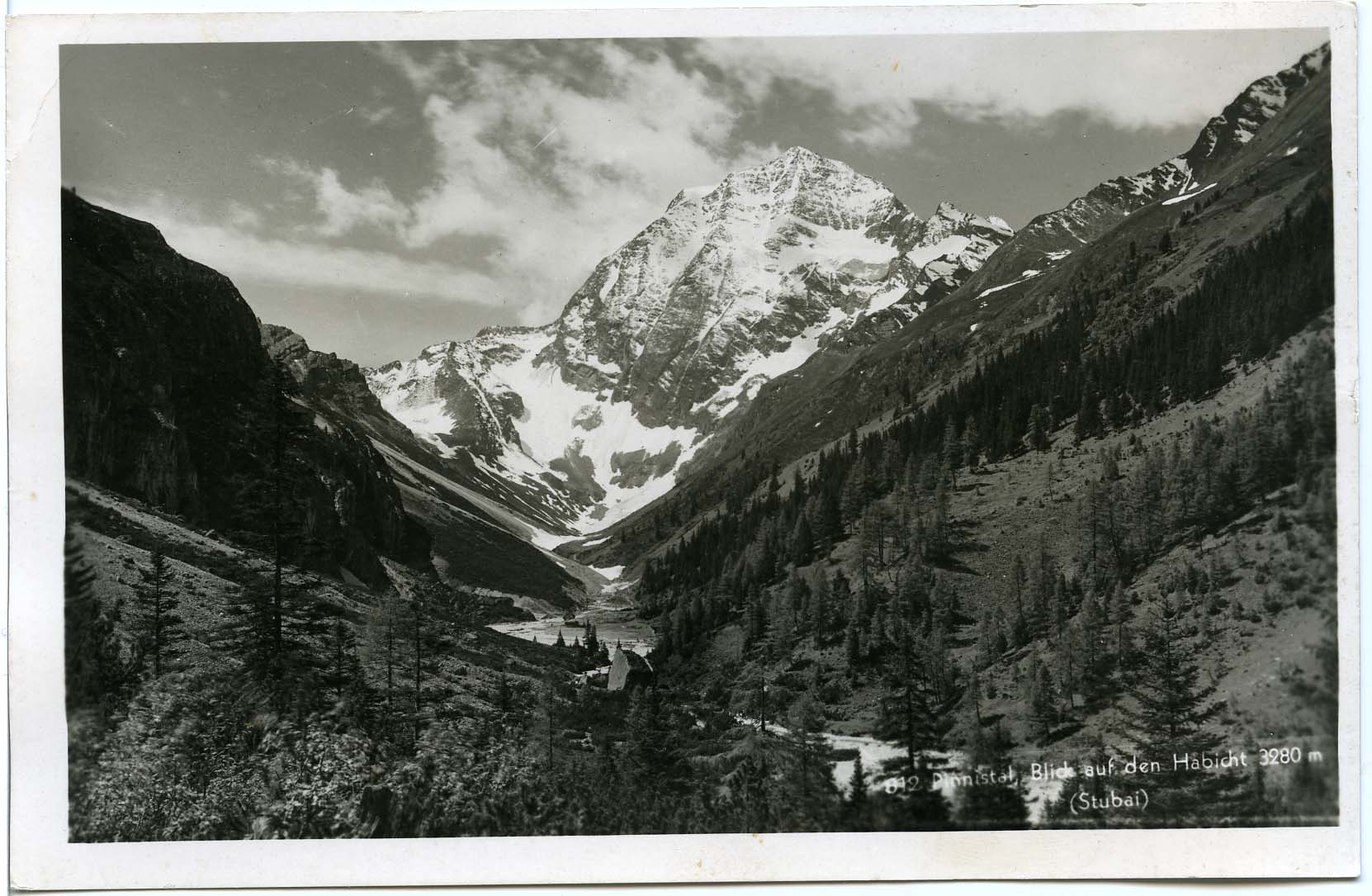 AK/Postkarte, Blick auf das Pinnistal in den Stubaier Alpen in Tirol, Hintergrund ist der Habicht, beschrieben, gelaufen, ohne Briefmarke und ohne Stempel, Maße 9,0 x 14,0 cm
