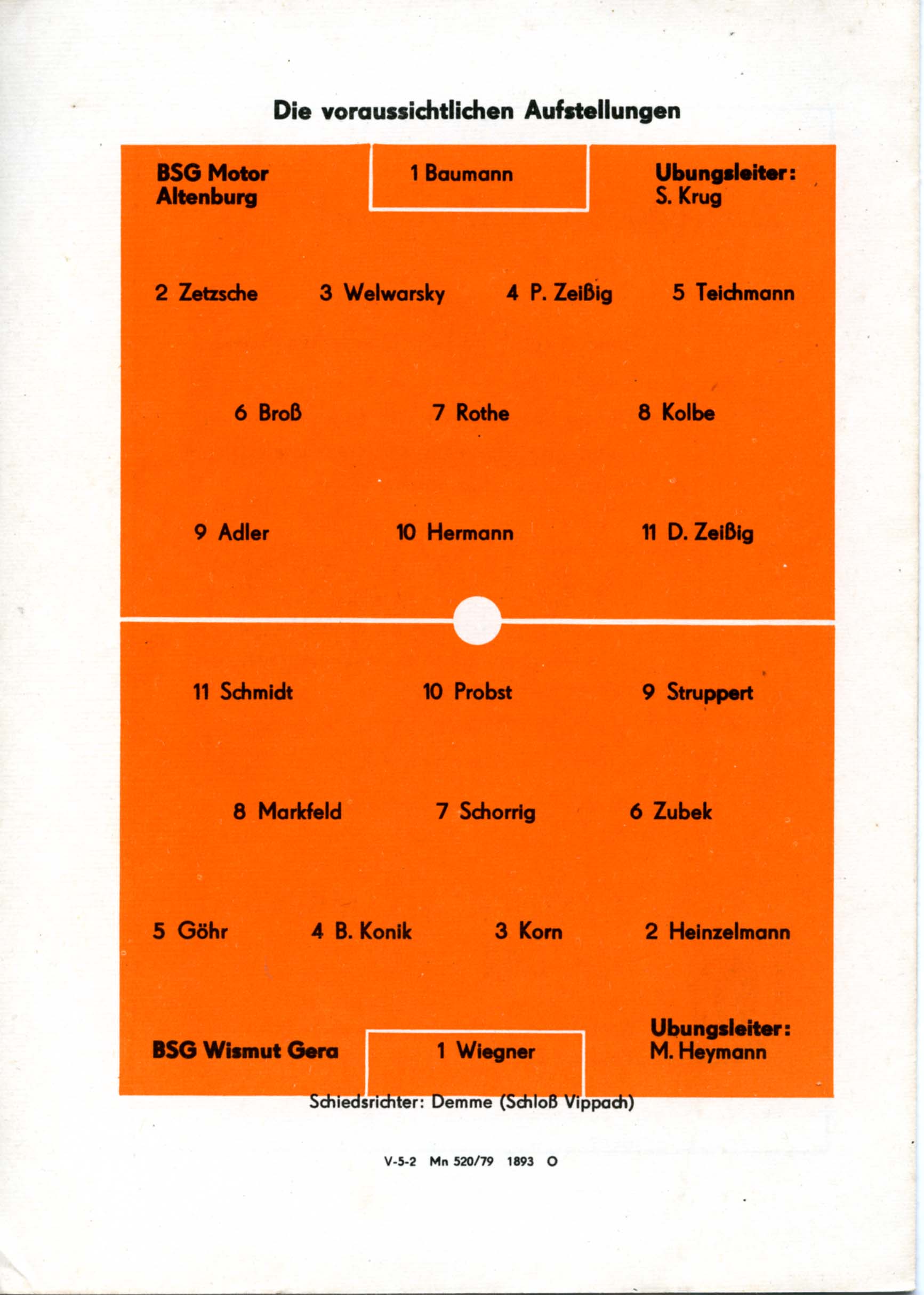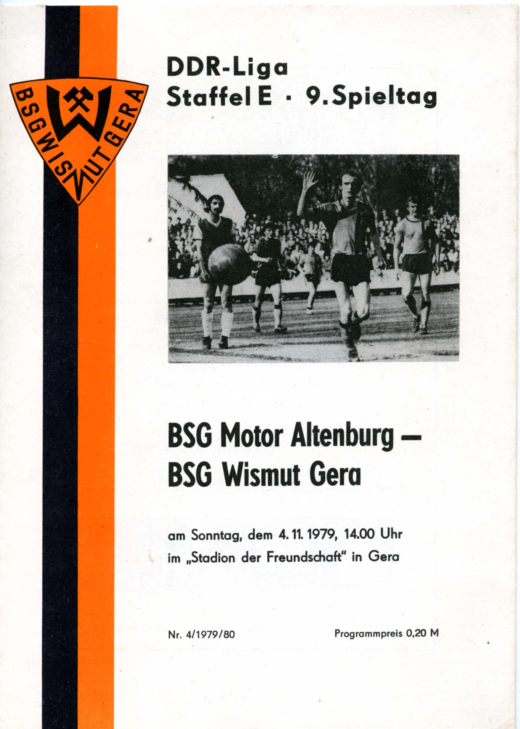 Fußball DDR-Liga, Staffel E, 9. Spieltag, Nr. 4, Spielzeit 1979/80, 04.11. 1979, 14.00 Uhr, Stadion der Freundschaft in Gera, mit Tabellen und Texten sowie voraussichtliche Aufstellungen, 4 Seiten, 20,5 x 14,7 cm