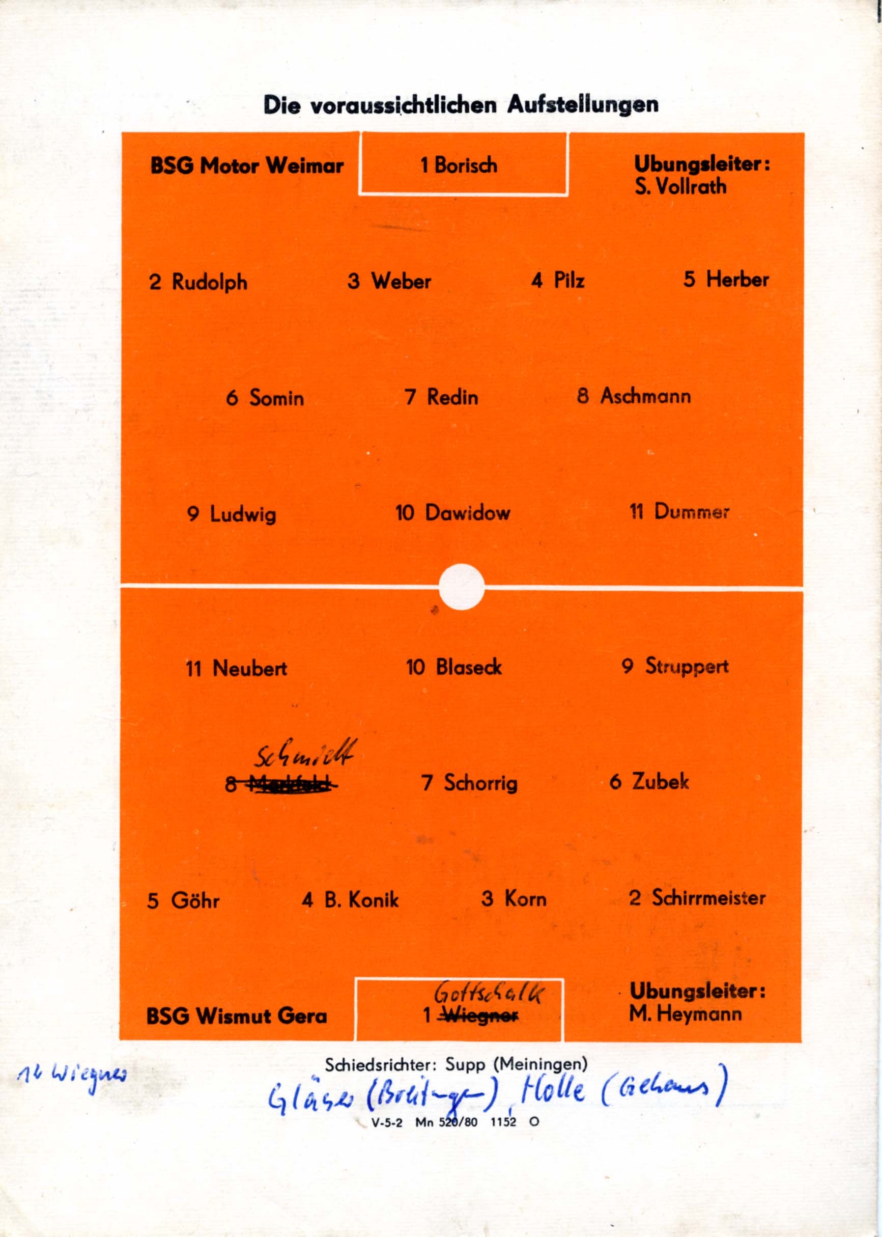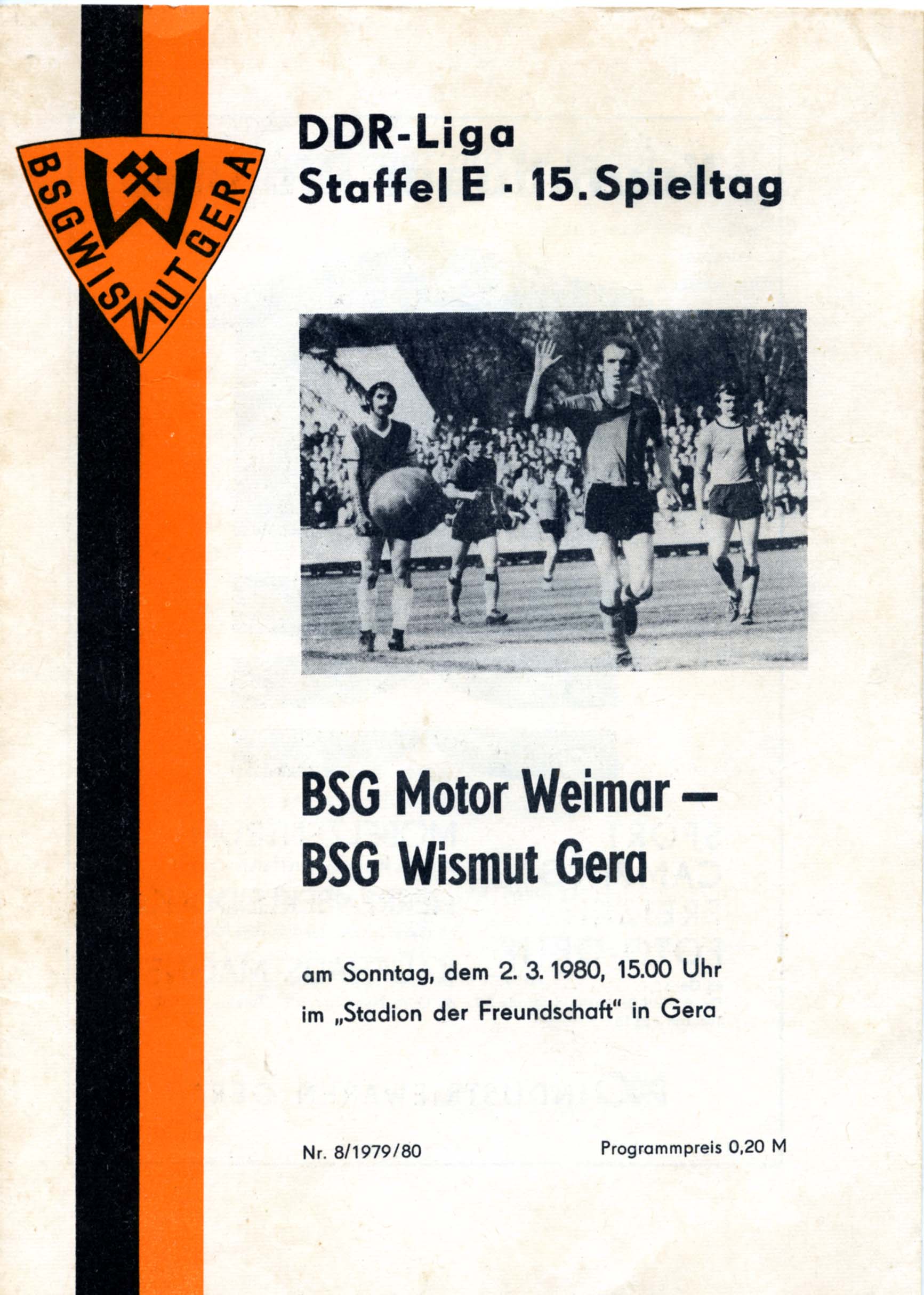 Fußball DDR-Liga, Staffel E, 15. Spieltag, Nr. 8, Spielzeit 1979/80, 02.03. 1980, 15.00 Uhr, Stadion der Freundschaft, mit Tabellen und Texten sowie voraussichtliche Aufstellungen, 4 Seiten, 20,5 x 14,7 cm