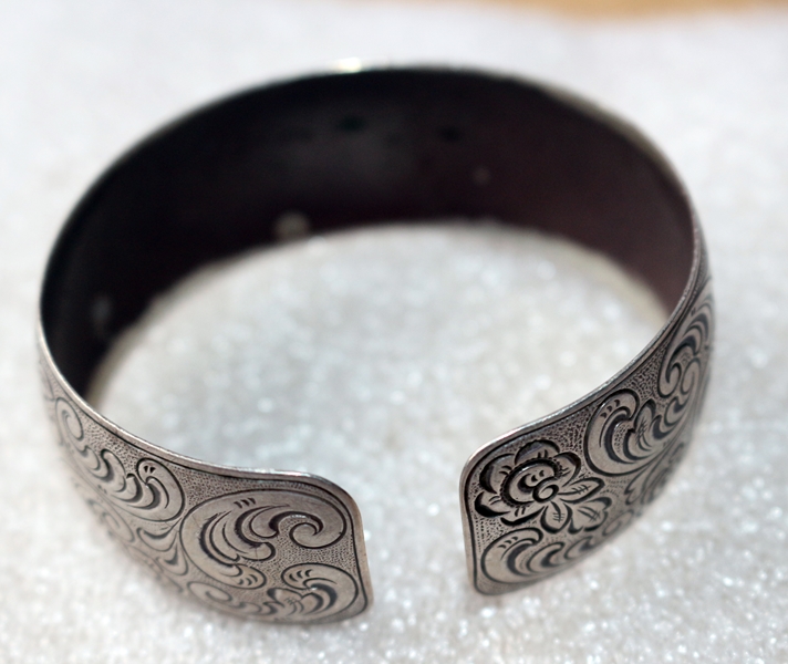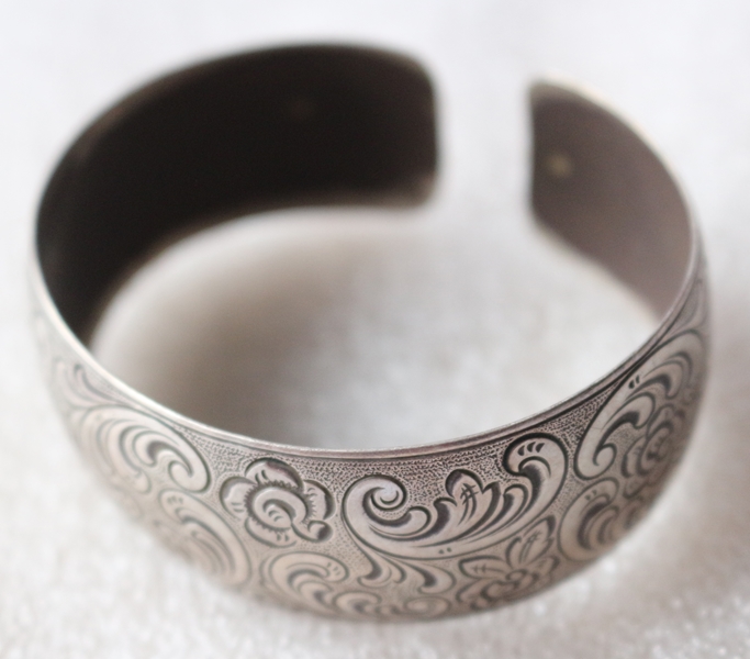 breiter Damenarmreif, ohne Punze, Material ev. Doch Silber, oval geformt, Dm 6,0 x 5,2 cm, Breite 2,5 cm, 20,0 g