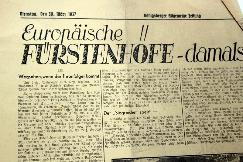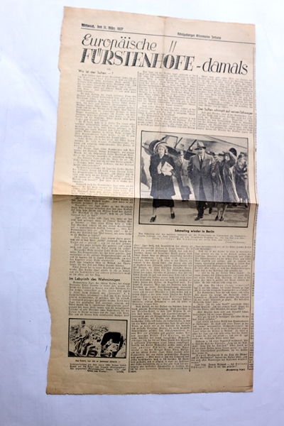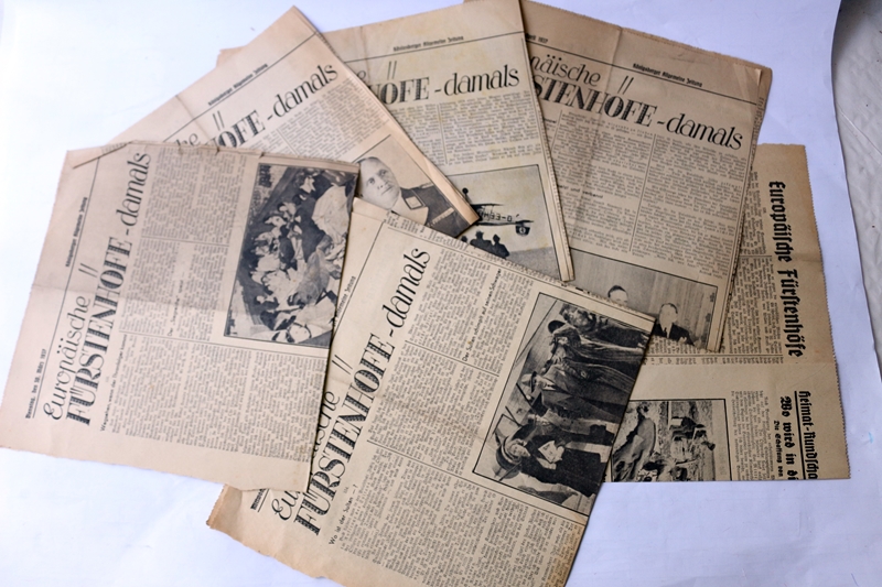 6 Zeitungsausschnitte über "Europäische Fürstenhöfe - damals" aus der Königsberger Allgemeinen Zeitung, Zeitraum: 30. März bis 5. April 1937