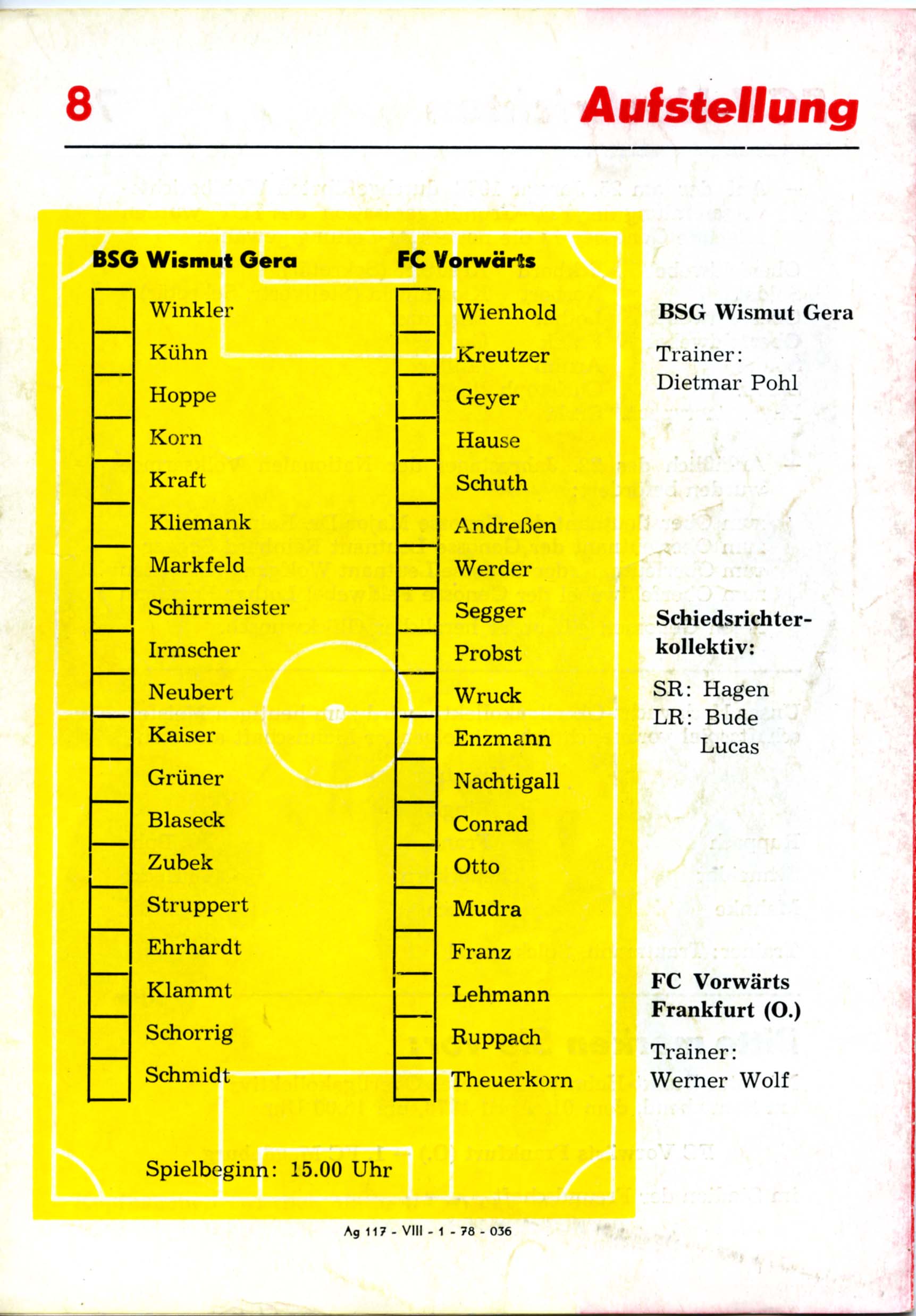 Fußball Oberliga, Spielzeit 1977/78, Sonnabend, den 04. März 1978, 15.00 Uhr, Stadion der Freundschaft, mit Bildern, Tabellen und Texten sowie voraussichtliche Aufstellungen, 8 Seiten