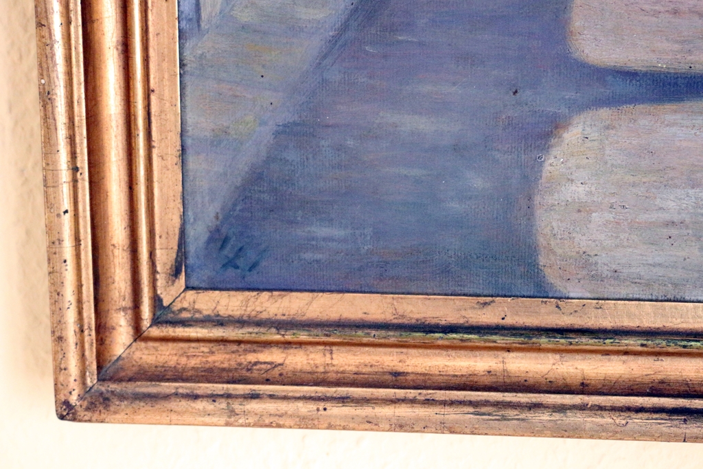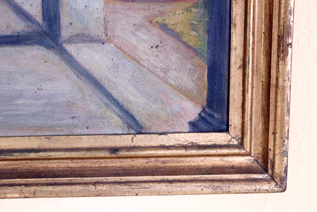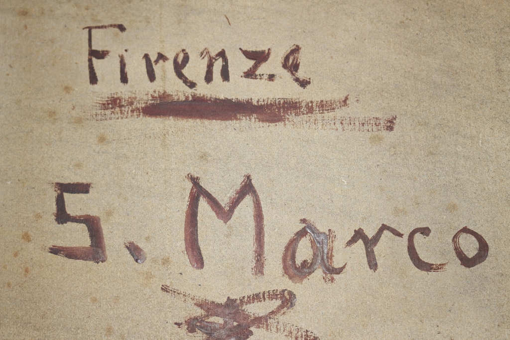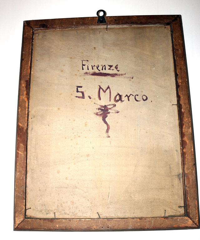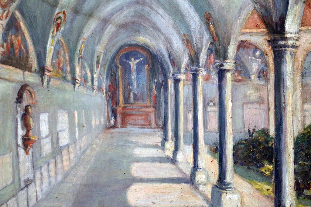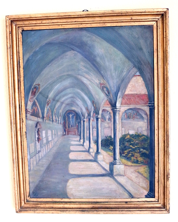 Kreuzgang (Laubengang) des Museo di San Marco und der Kirche San Marco in Florenz, Tempera auf Karton, gerahmt, Rahmenmaße 64,0 x 50,5 x 4,0 cm, sichtbares Bild 54,0 x 41,5 cm, Rückseite beschriftet