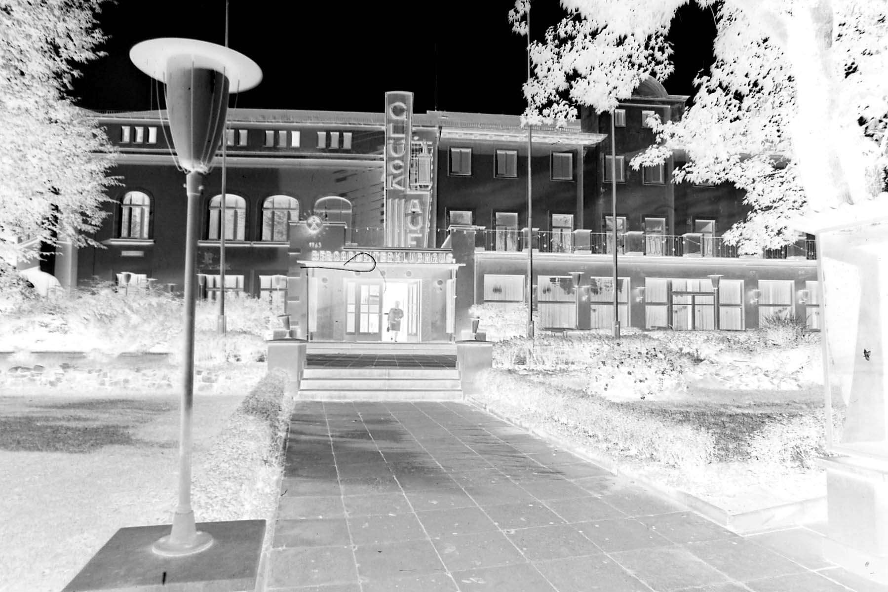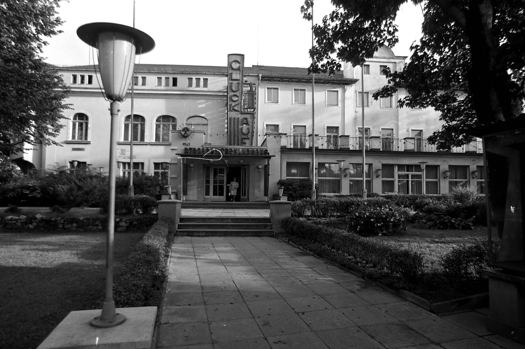 Original - Negativ, s/w, Kleinbild, Bergarbeiterklubhaus, Frontalansicht mit Eingangsbereich