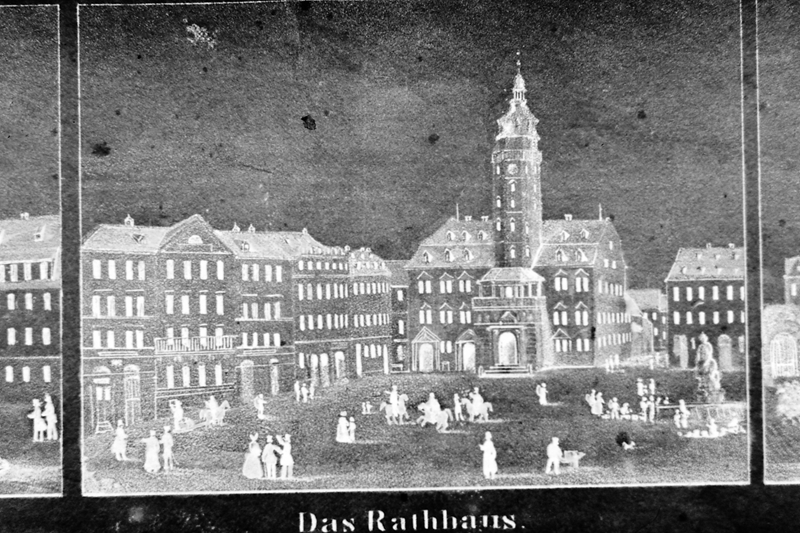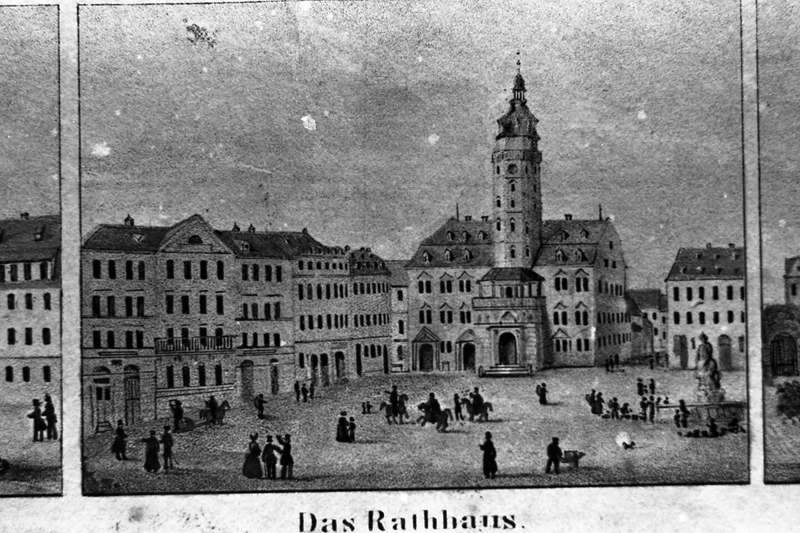 Original - Negativ, s/w, Kleinbild, Reproduktion, Gera, Das Rathaus und Marktplatz, um 1730
