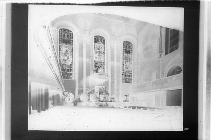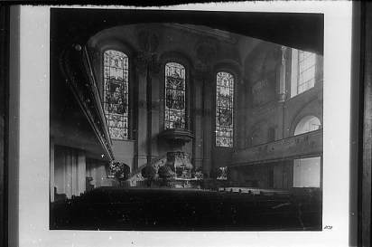 Original - Negativ, s/w, Kleinbild, Reproduktion, Kanzel und die kunstvoll gestalteten Kirchenfenster der Salvatorkirche