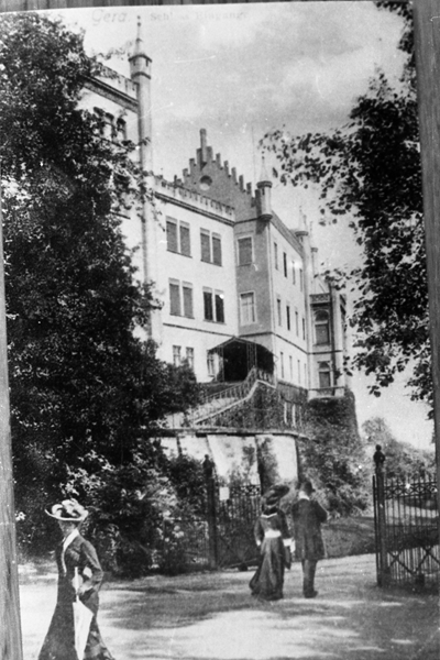 Original - Negativ, s/w, Kleinbild, Reproduktion, Schloss Osterstein Toreinfahrt mit Fußgängern, um 1900
