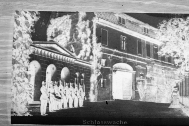 Original - Negativ, s/w, Kleinbild, Reproduktion, Schloss Osterstein Schlosswache vor dem Wirtschaftsgebäude, um 1900