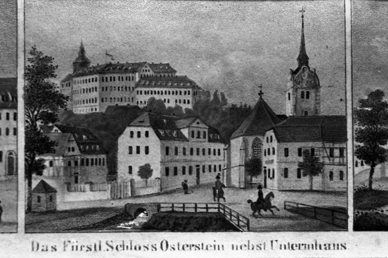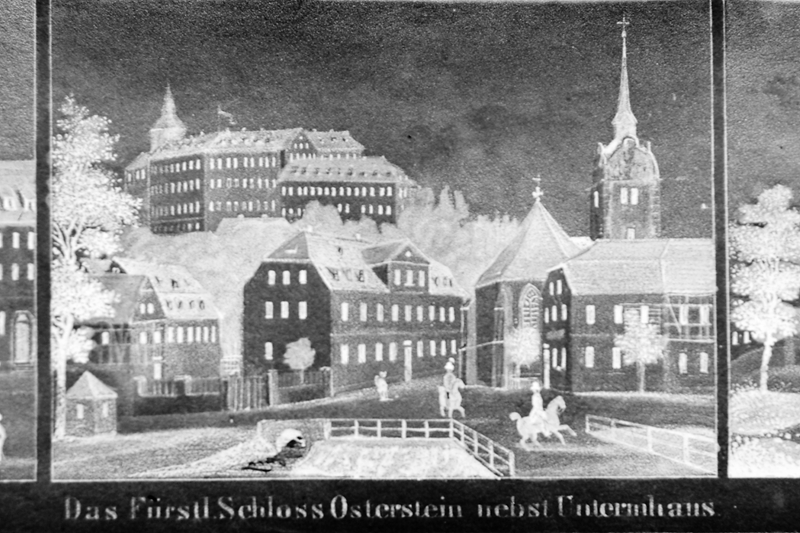 Original - Negativ, s/w, Kleinbild, Reproduktion, Gera, Schloss Osterstein nebst Untermhaus, um 1700