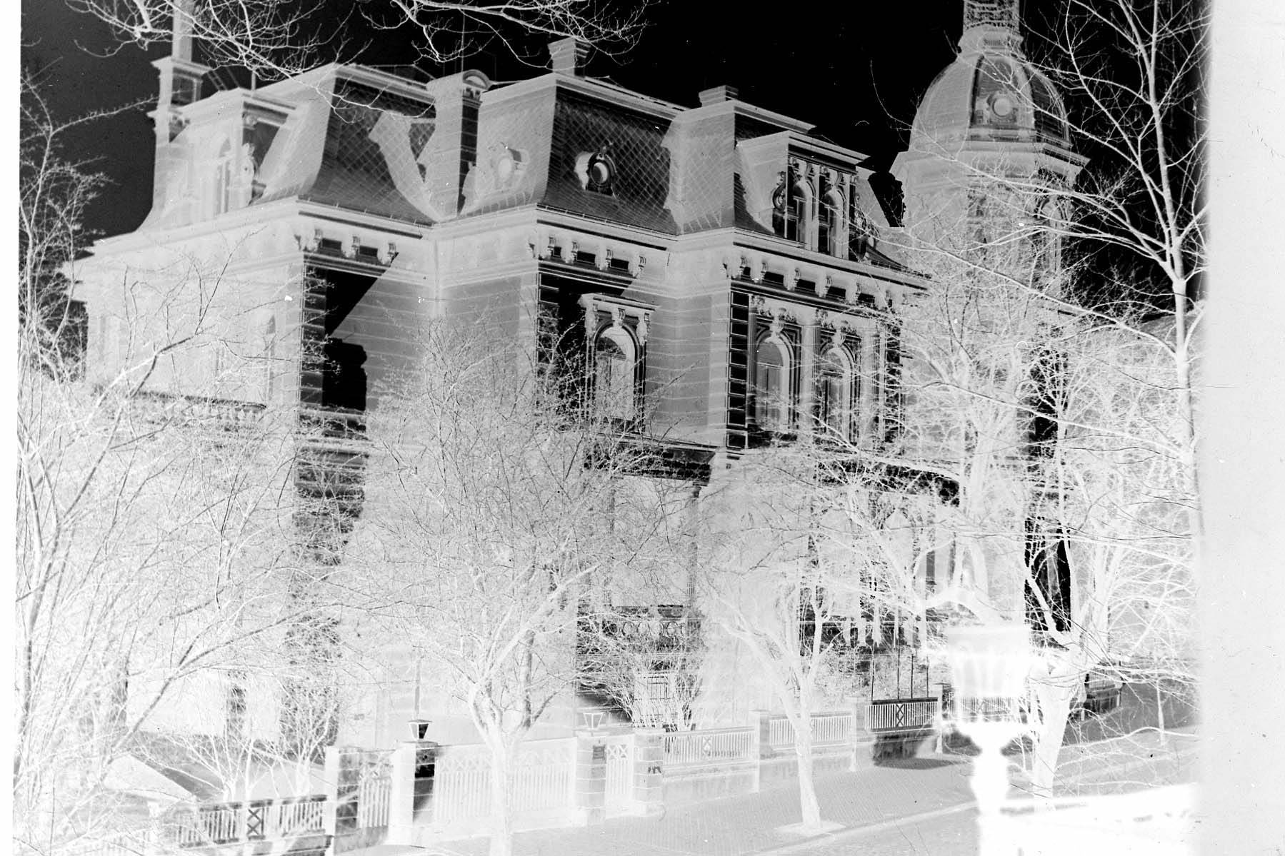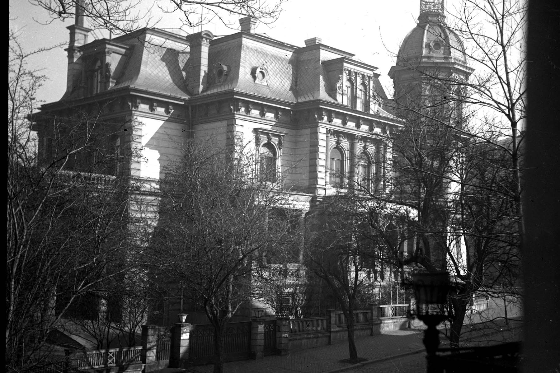 Original - Negativ, s/w, 6x9, Villa Meyer in Gera, eine der prächtigsten Neorenaissance-Villen der Stadt. Sie wurde von 1881 bis 1883 für den Kommerzienrat Wilhelm Meyer errichtet.