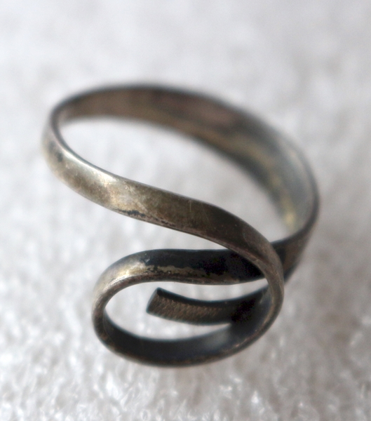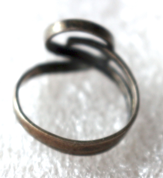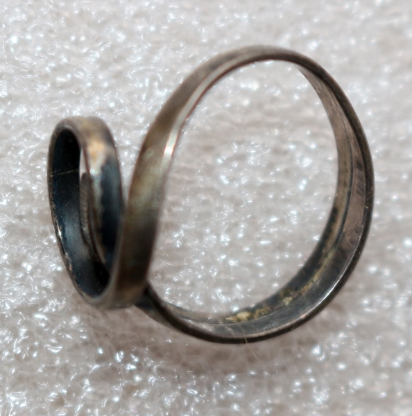 Geschwungener Silberring, Jugendstil, Silber punziert 830 A, Höhe 2,0; Inn-Dm 1,7 cm; Breite oben 1,2 cm, 3,0 g