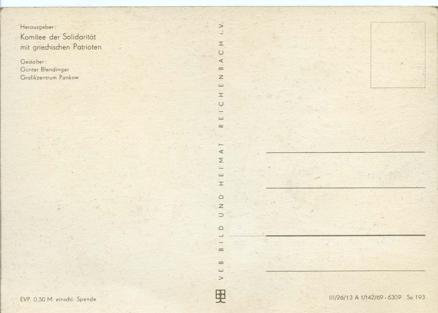 Künstler Ansichtskarte/Postkarte von Blendinger, Günter, DDR, Komitee der Solidarität mit griechischen Patrioten, Maße 10,5 x 14,8 cm