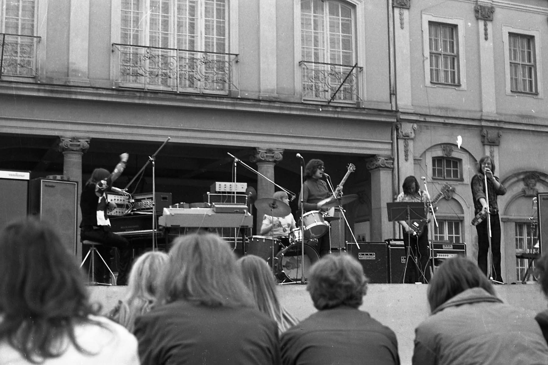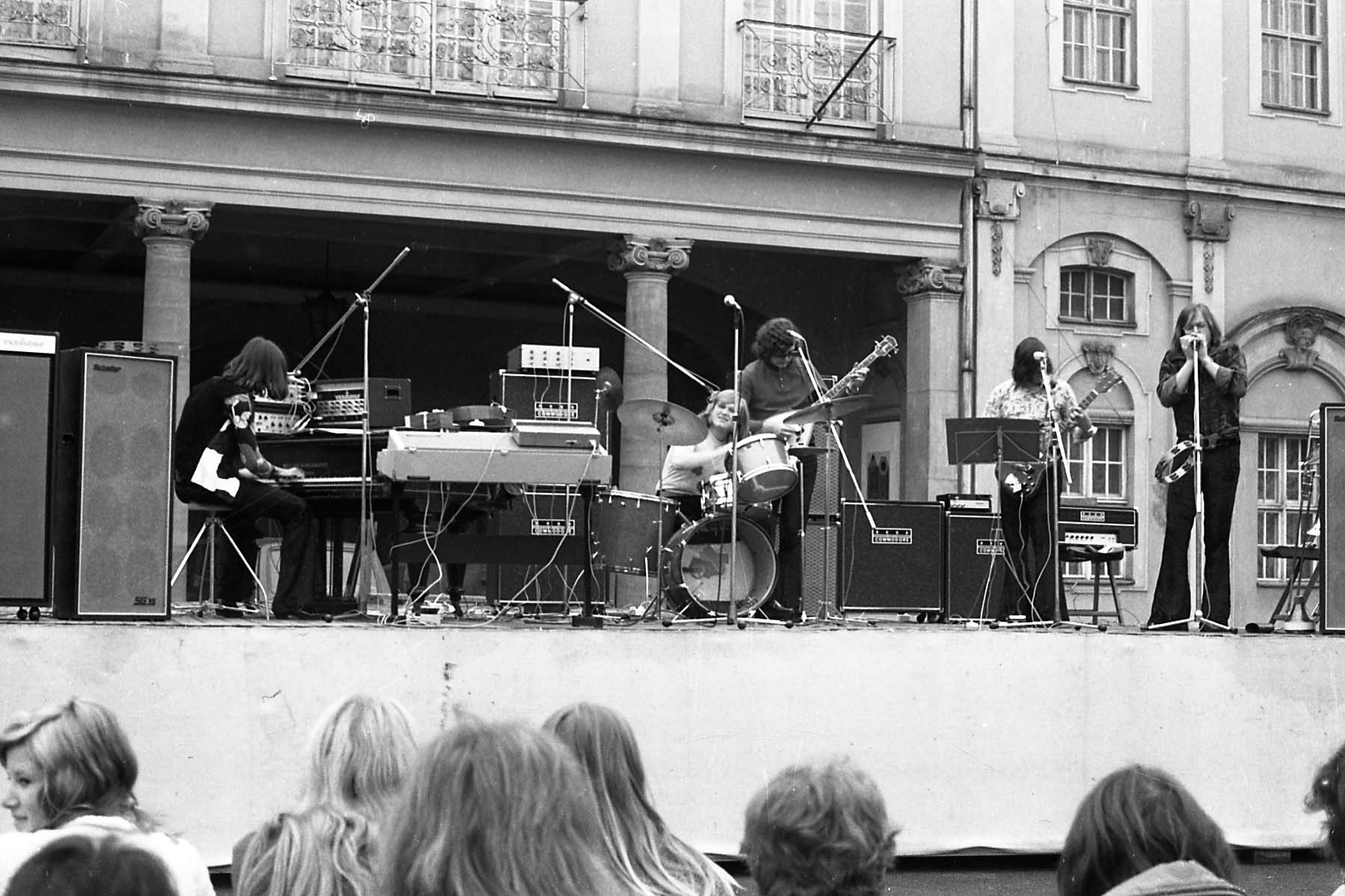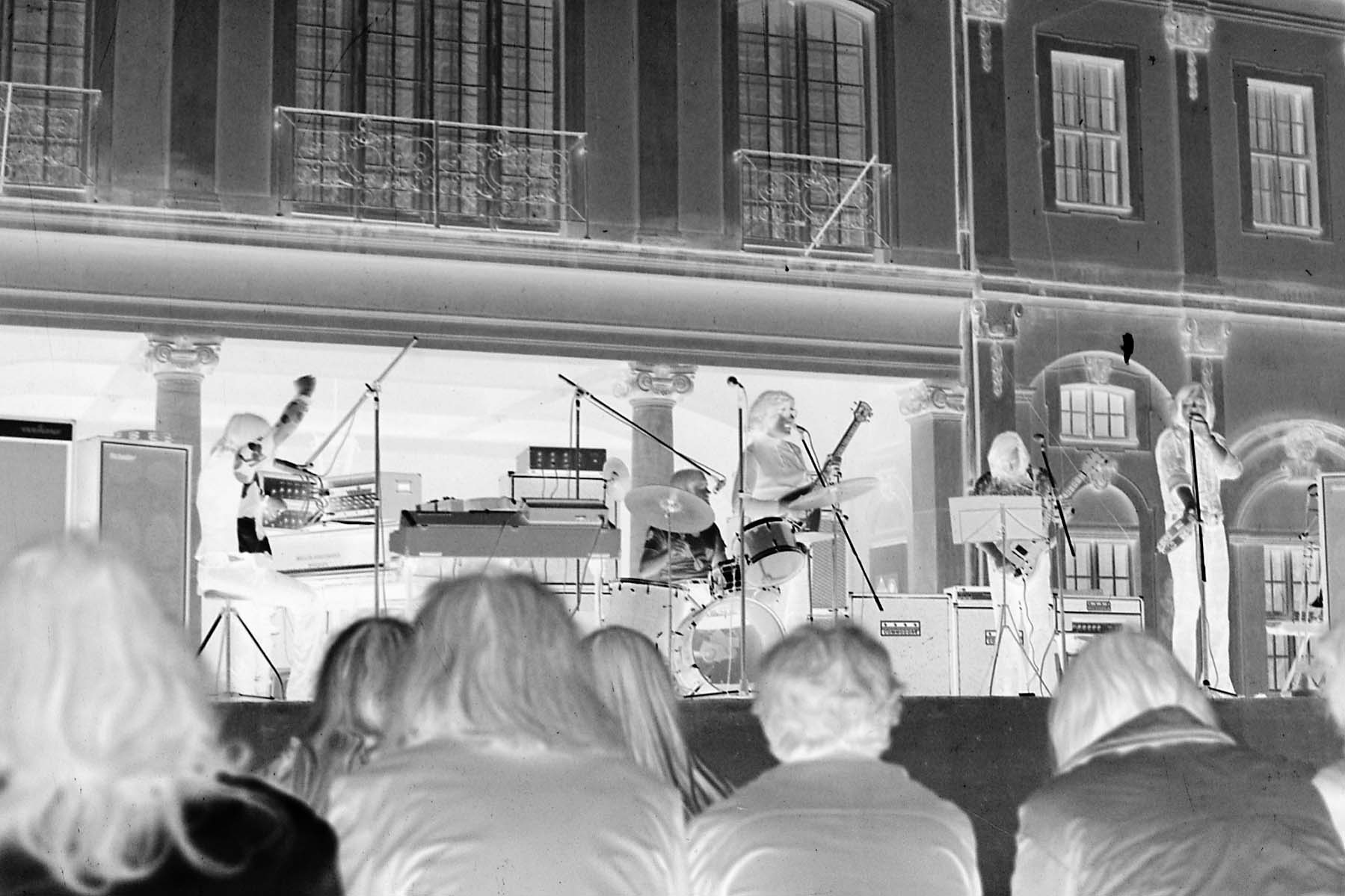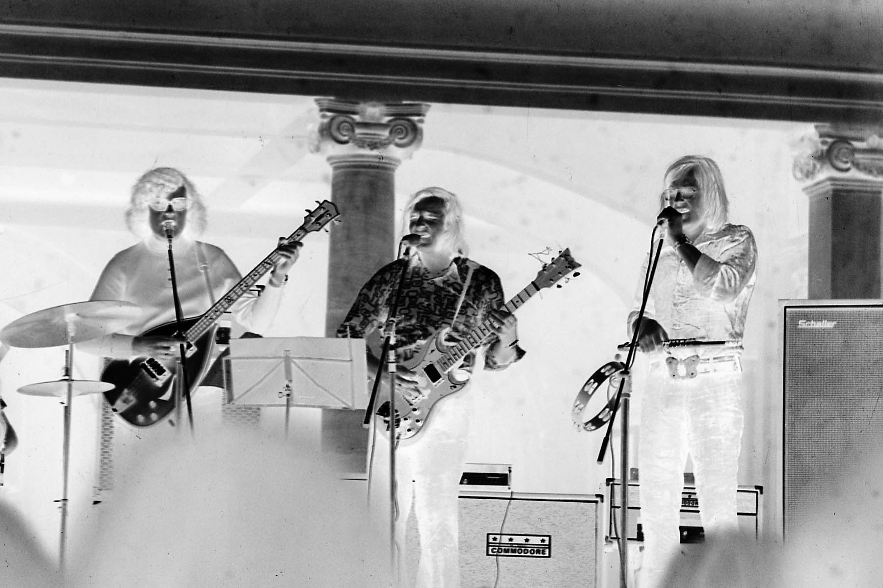 18 Original - Negative, s/w, Kleinbild, der Musikgruppe "Wir", Auftritt in Gera vor der Puppenbühne, 5 Negative sind sichtbar)
