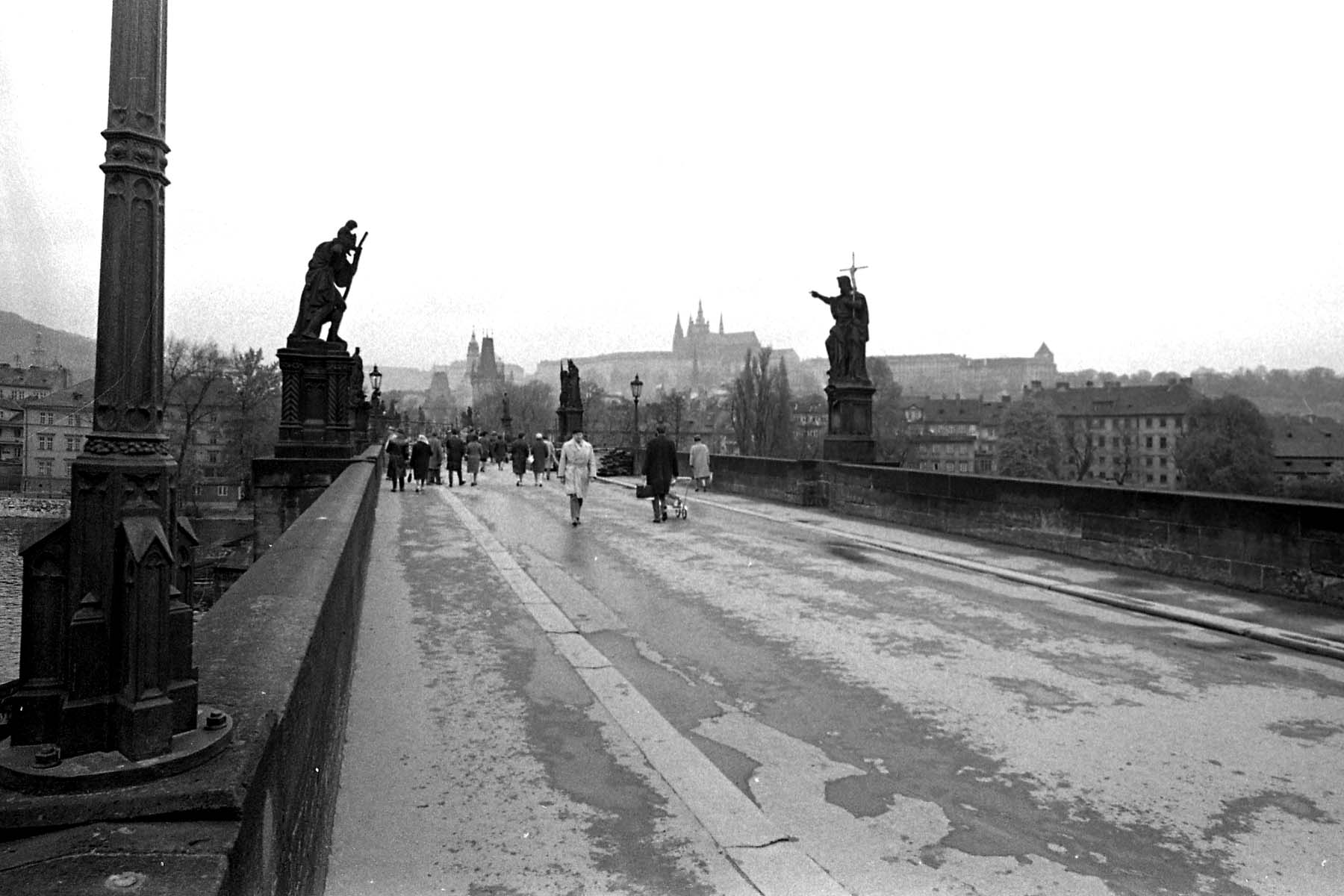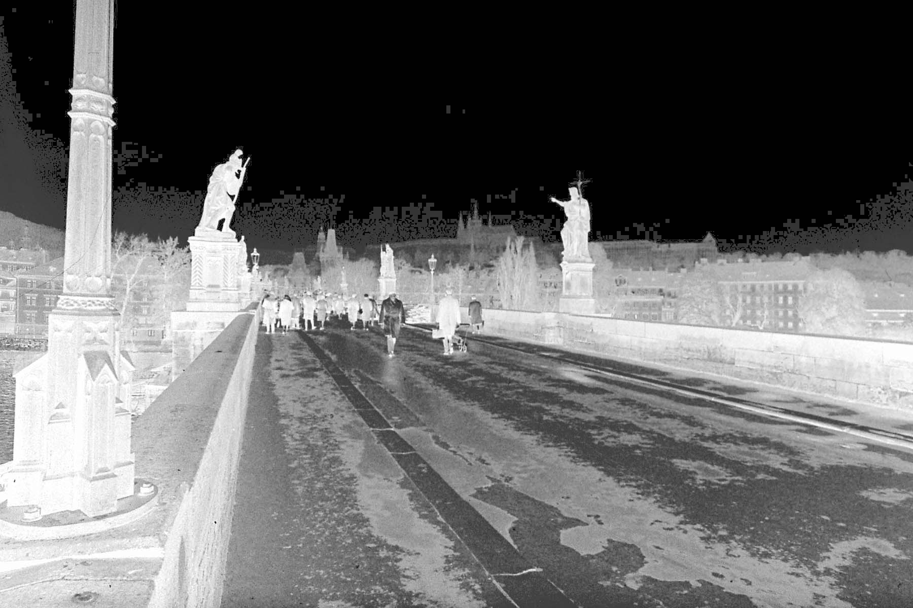 Original - Negativ, s/w, Kleinbild, Karlsbrücke in Prag, CSSR, mit Blick auf die Prager Burg im Hintergrund