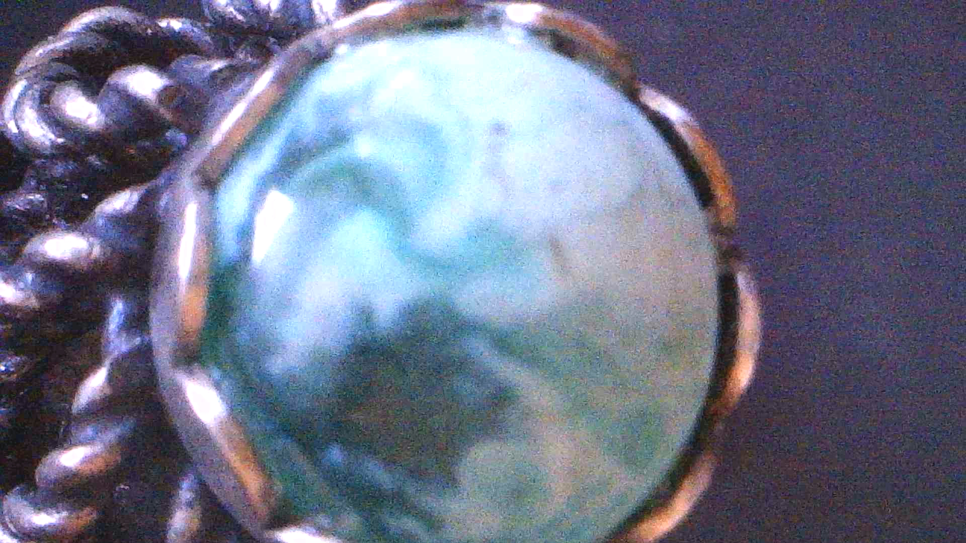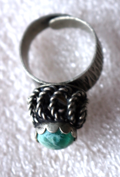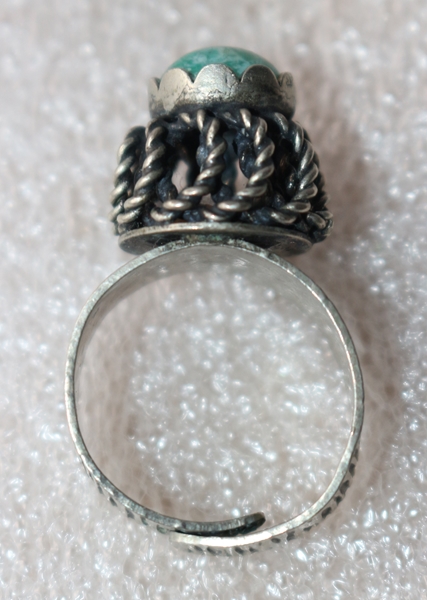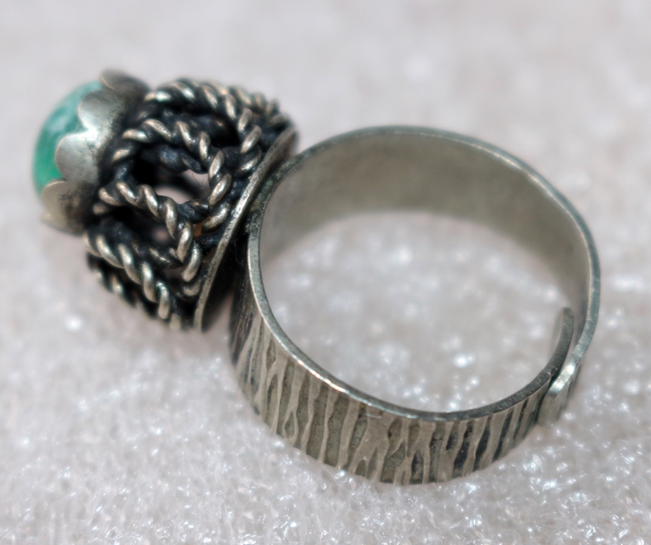 Modeschmuck, Metallring mit Stein, UdSSR, Gesamthöhe 3,3 cm, Inn-Dm 1,8 cm, Breite 1,4 cm, 6,0 g