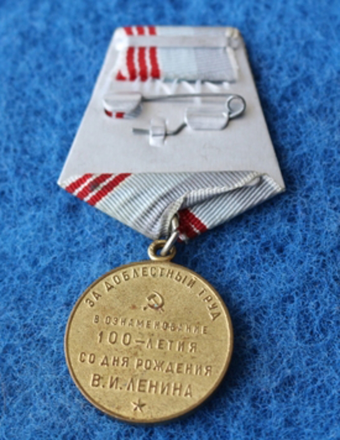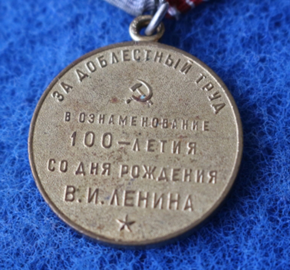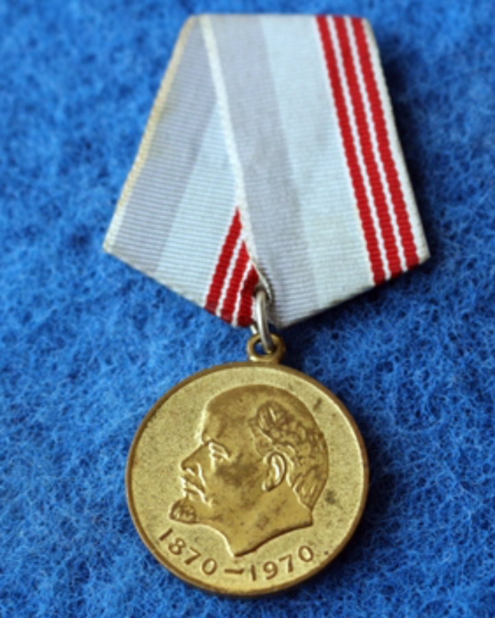 Jubiläumsmedaille Für heldenmütige Arbeit (Für militärisches Heldentum) Zum Gedenken an den 100. Geburtstag Wladimir Iljitsch Lenins, auf der Rückseite in russisch: (siehe Bilder), Sonderausführung für internationale kommunistische Staatsangehörige, z.B. Erich Mielke