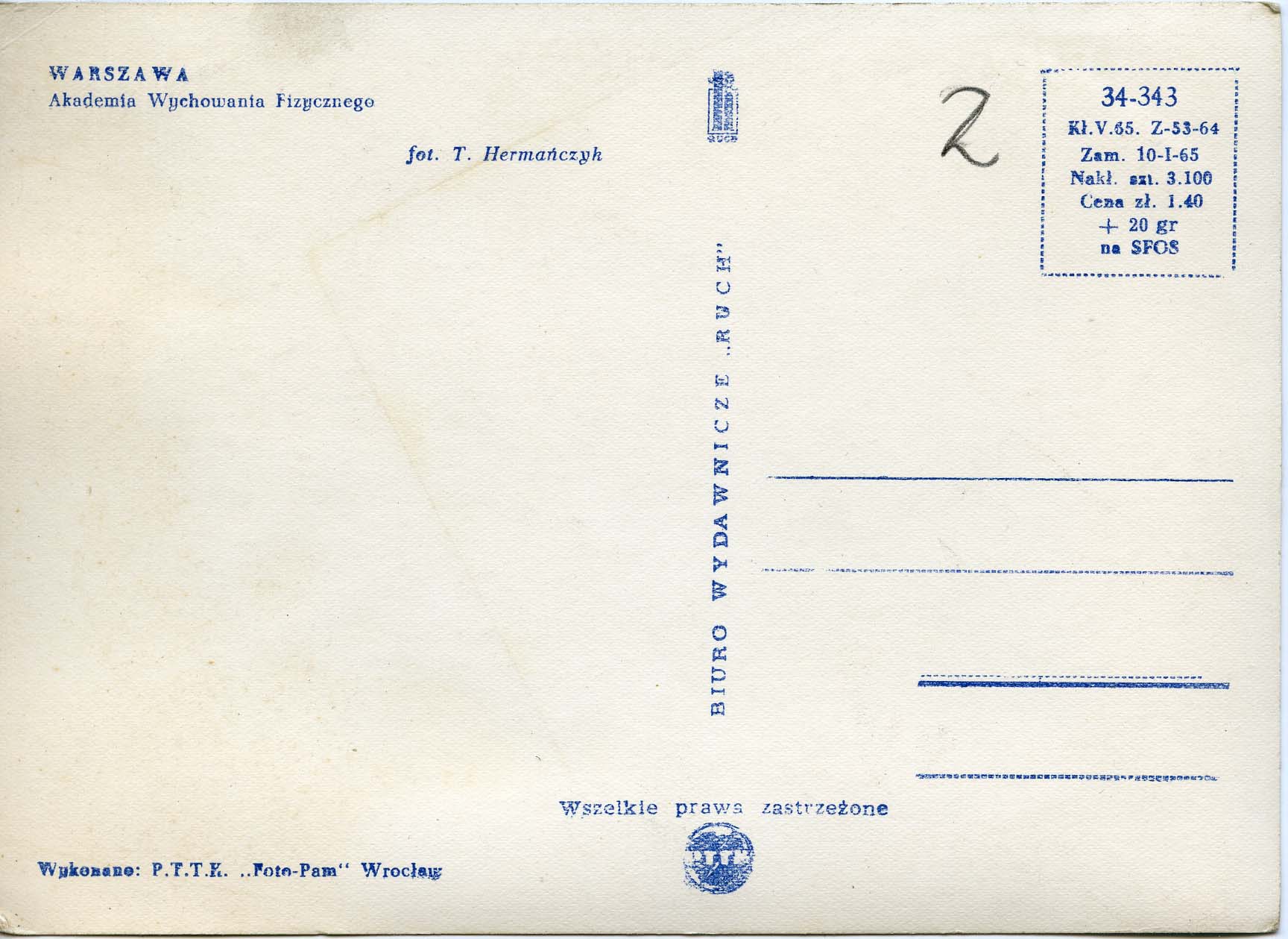 AK/Postkarte Warszawa, Akademia Wychowania Fizycznego im. Józefa Pi?sudskiego w Warszawie, ungelaufen, ohne Briefmarke und ohne Stempel, Foto von T. Hermanczyk, Maße 10,6 x 14,7 cm